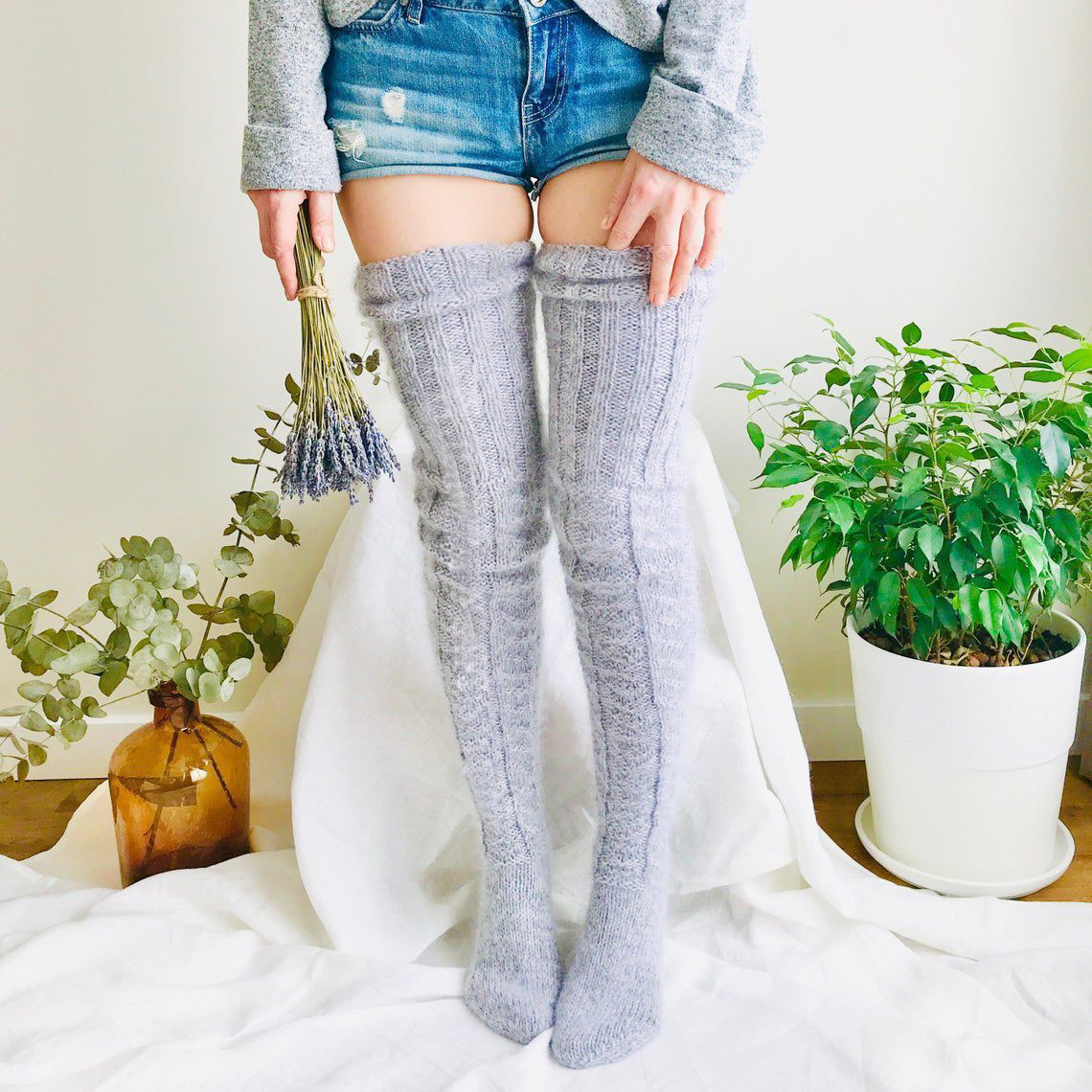 Twist Over The Knee Stockings Bunching Socks Women
